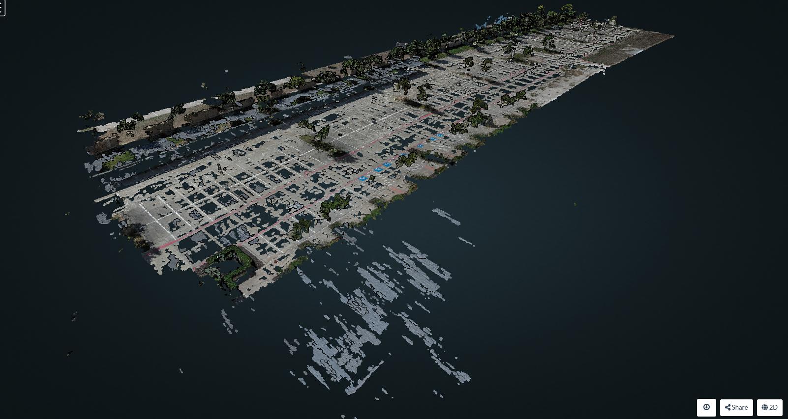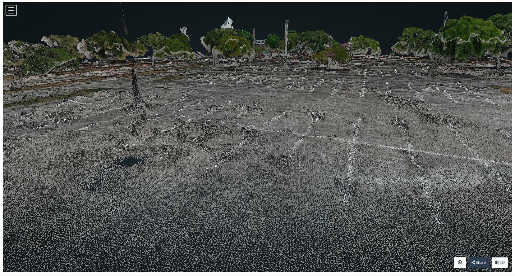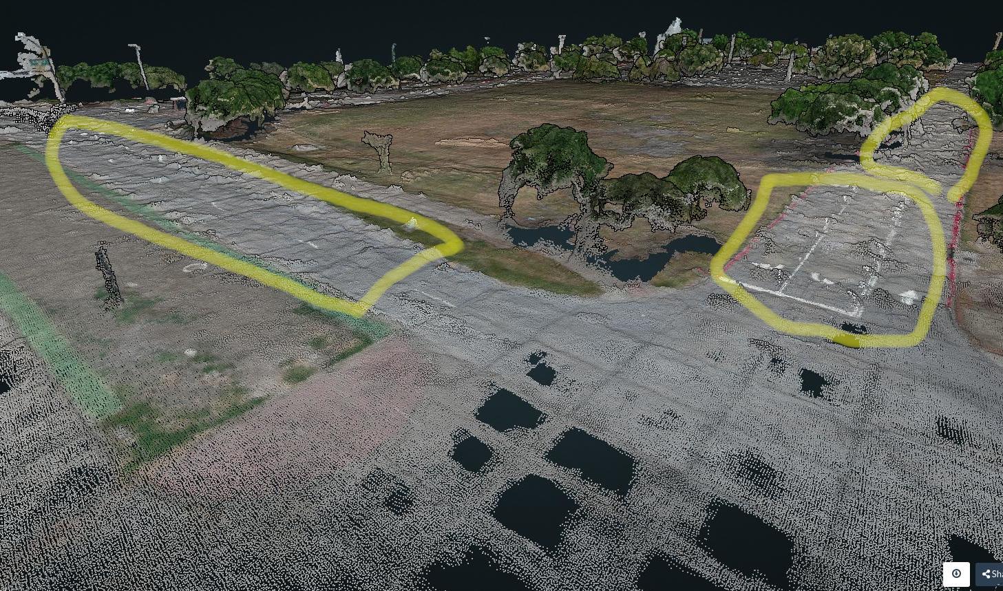 I took a look at the data, and there’s a bit of a fib going on here from Correlator3D, something that Pix4D does as well. Both packages return a point cloud that doesn’t actually represent the depthmaps from the input images. This is a painted, paved surface. Aside from the lines painted on the pavement, it has no discernible features to extract where Correlator3D is showing points. This is a bit of a sign that something different is going on.