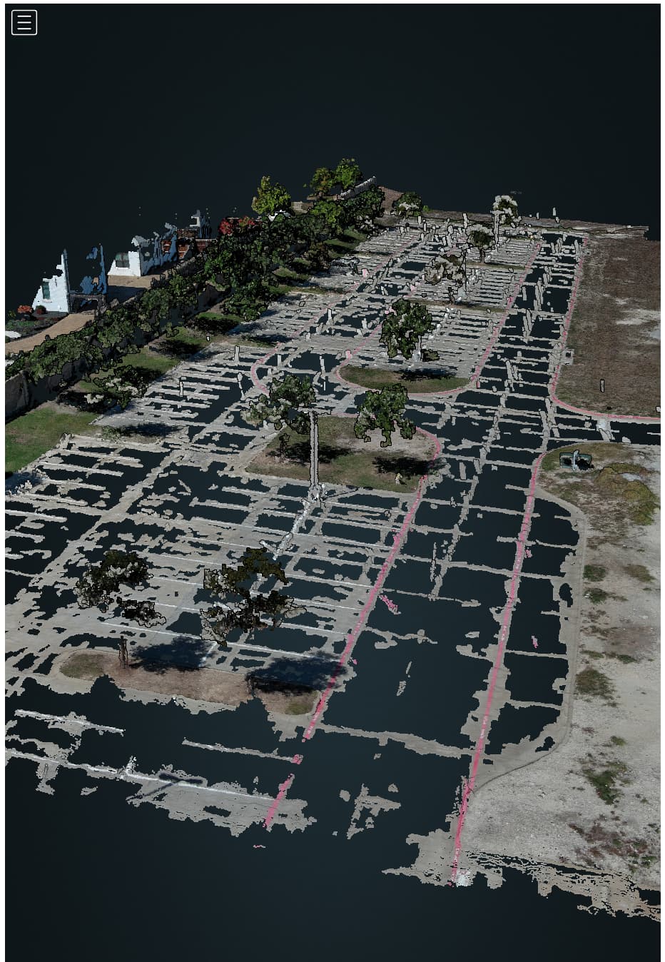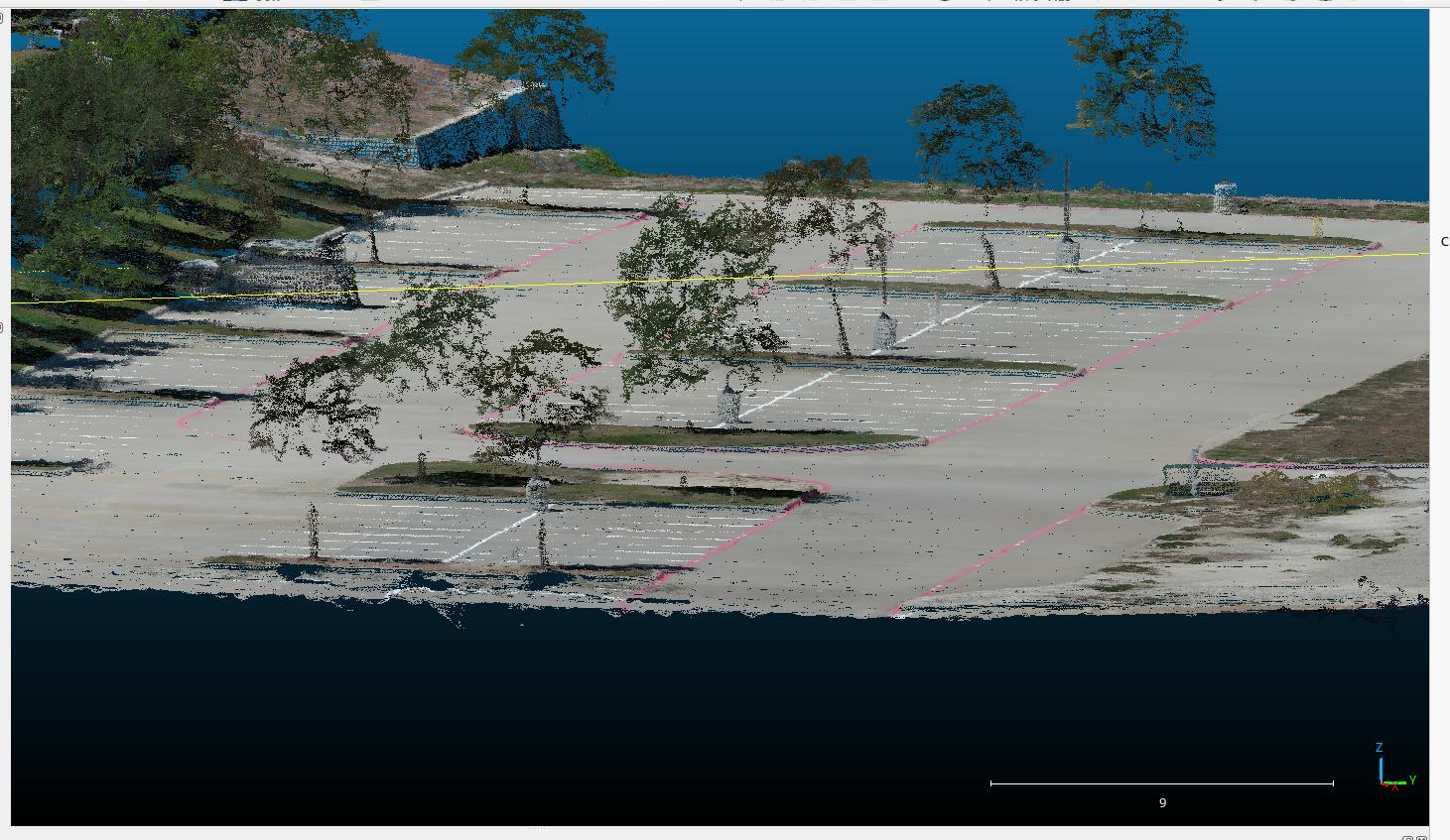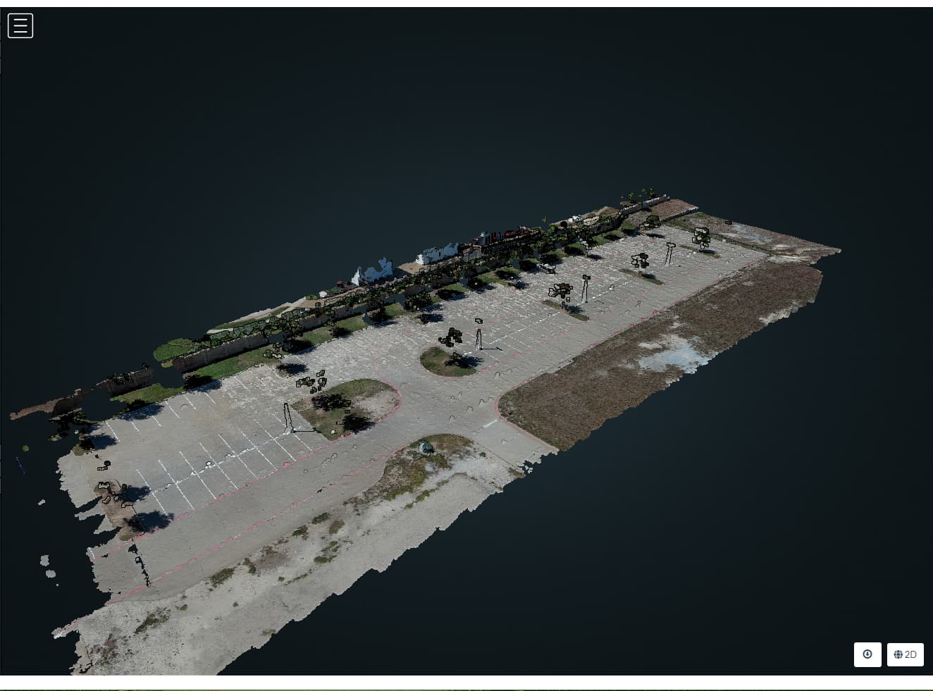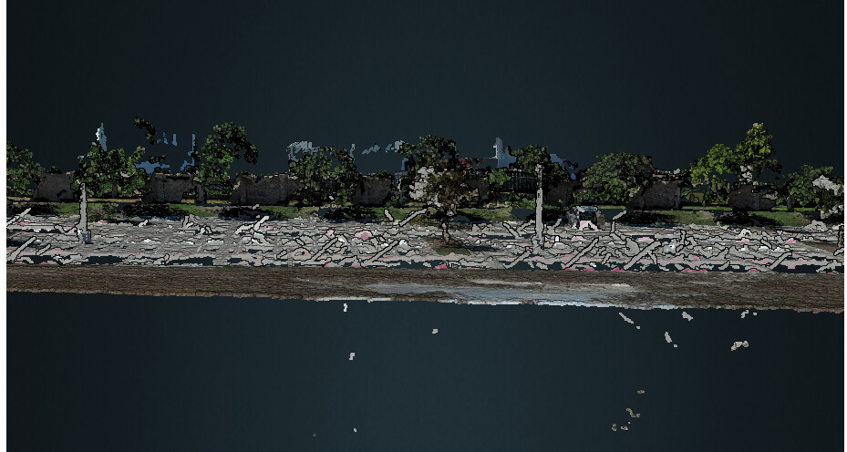 I took a look at the data, and there’s a bit of a fib going on here from Correlator3D, something that Pix4D does as well. Both packages return a point cloud that doesn’t actually represent the depthmaps from the input images. This is a painted, paved surface. Aside from the lines painted on the pavement, it has no discernible features to extract where Correlator3D is showing points. This is a bit of a sign that something different is going on.