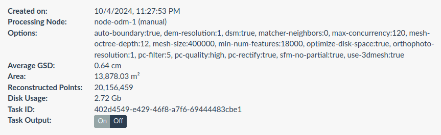 From here, we have some choices of what to do. We can use those depthmaps and camera positions to create a point cloud directly (OpenDroneMap’s approach, as well as probably Agisoft), or we can use those depthmaps and camera positions and generate a mesh directly (Pix4D, likely Correlator3D). There are advantages and disadvantages to each, but an advantage to generating a mesh directly from the depthmaps is that then when someone wants a point cloud, you can sample a perfect point cloud from your mesh. A disadvantage is that we usually lose some details.