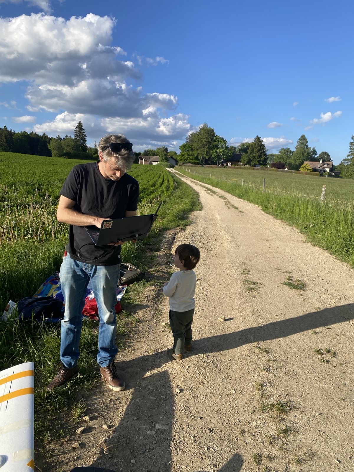So we took it off to the field (sadly after Hubert’s departure) and flew it in the Jura mountains with a couple of Oriol’s friends, plus a munchkin in tow: